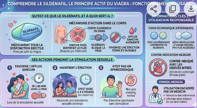 Avant de détailler chaque alternative, il est utile de comprendre pourquoi le Sildénafil fonctionne et ce que l'on peut en attendre.